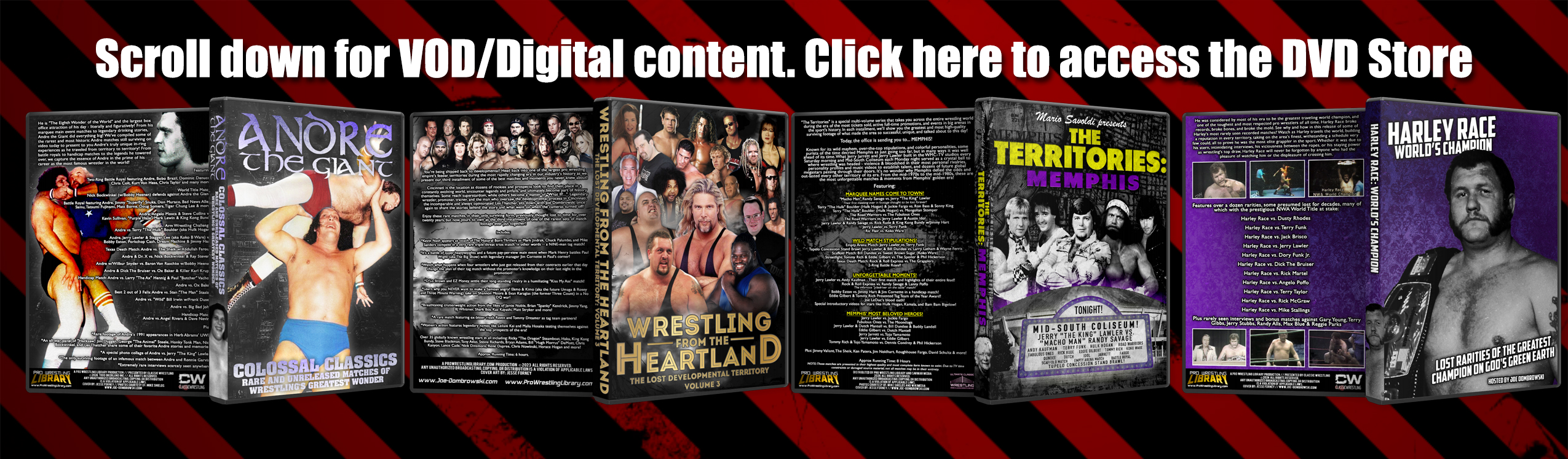 DISCLAIMER: The titles available here are intended for private home viewing only. Any unauthorized re-sale, re-distribution, or re-broadcast, including or excluding a monetary charge, without the expressed written consent of the content owner(s) is prohibited. All content herein is owned by Joe Dombrowski/Pro Wrestling Library, or used with full permission of the respective copyright holder.